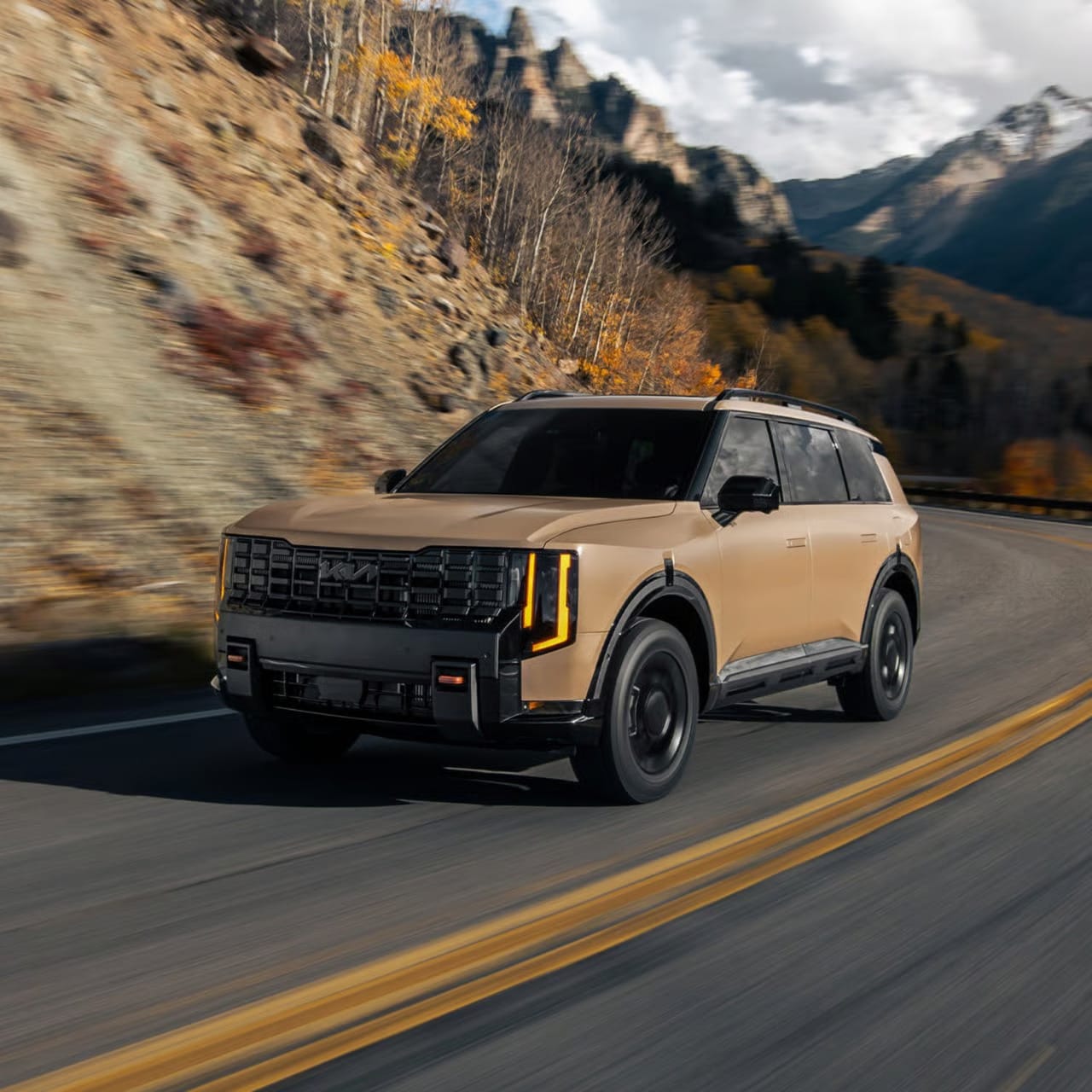 2027 Telluride Hybrid X-Line SX Prestige shown with optional features. Not all optional features are available on all trims. Some features may vary. Expected early 2026. Inventory expected to be limited. Not official EPA estimates. Actual mileage will vary with options, driving conditions, driving habits and your vehicle's condition. Mileage and range based on EX FWD Hybrid equipped with 18-inch tires. Kia-est. total driving range based on preliminary manufacturer estimates. Range assumes 100% of a full tank used before refueling. Actual range may vary. Kia recommends you refuel as soon as possible after the low fuel warning light illuminates or sooner. Reclining seat and/or elevating footrest can reduce the effectiveness of the safety restraint system and may lead to additional injury in an accident. Use extreme caution when using the seat warmers to avoid burns. Refer to the Owner's Manual for more safety information. 2027 Telluride X-Pro SX Prestige shown with optional features. Not all optional features are available on all trims. Some features may vary. Expected early 2026. Inventory expected to be limited. No system, no matter how advanced, can compensate for all driver error and/or driving conditions. Always drive safely. Towing requires additional equipment. See Owner's Manual for towing instructions. Always use caution while towing. 2027 Telluride X-Pro SX Prestige shown with optional features. Not all optional features are available on all trims. Some features may vary. Expected early 2026. Inventory expected to be limited. Class-leading 2nd-row legroom based on 2nd-row legroom comparison among midsize SUV segment as of October 2025. Midsize SUV class defined by Kia segmentation. Class-leading 2nd-row legroom only applicable to the gas-powered 2027 Telluride. Use extreme caution when using the seat warmers to avoid burns. Refer to the Owner's Manual for more safety information. Reclining seat and/or elevating footrest can reduce the effectiveness of the safety restraint system and may lead to additional injury in an accident.