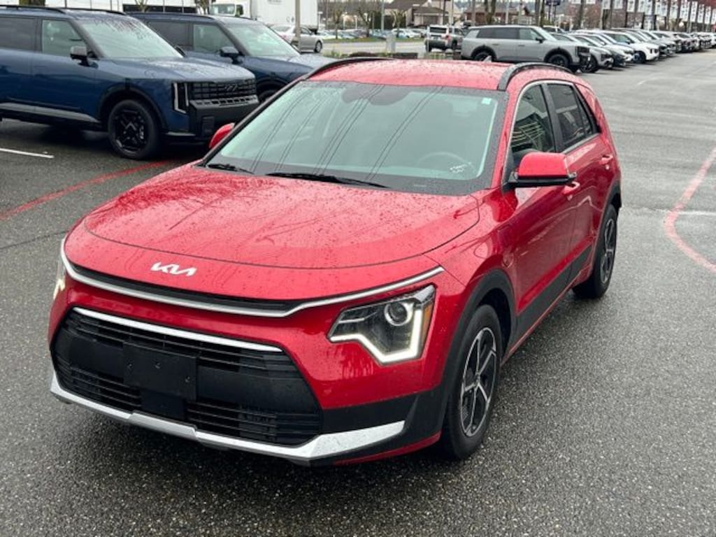 Discover the perfect blend of style, efficiency, and advanced technology in this 2023 Kia Niro Plug-In Hybrid EX. With its sleek Runway Red exterior and a host of premium features, this certified pre-owned Niro is ready to take your driving experience to new heights.